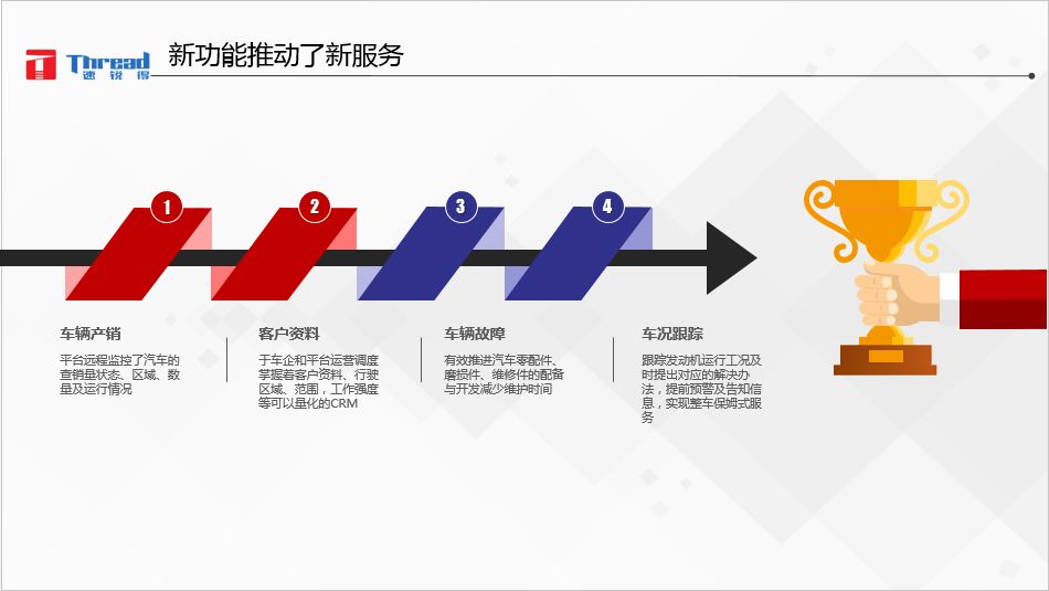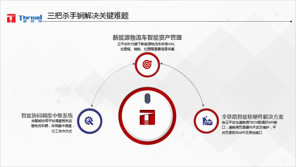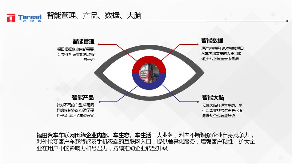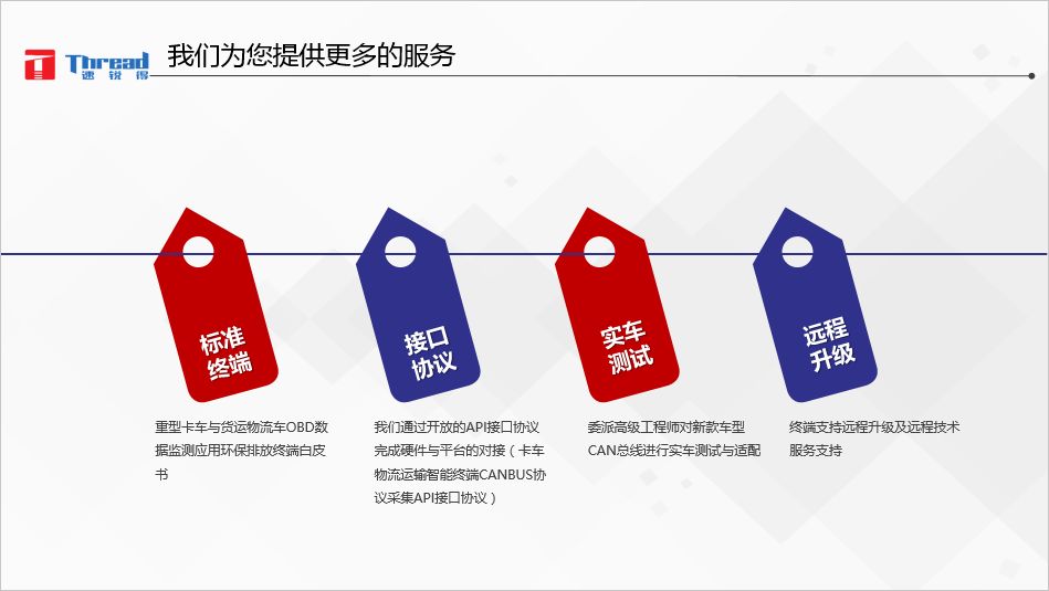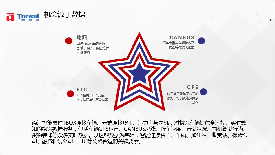 We are in the era of all things, intelligent equipment and data will penetrate every aspect of the industry and become an important infrastructure. Thread insists on open cooperation, introduces logistics data into customer ecology, and promotes enterprise and industry efficiency. The promotion helps companies tap and collect larger car data and innovate their business models.